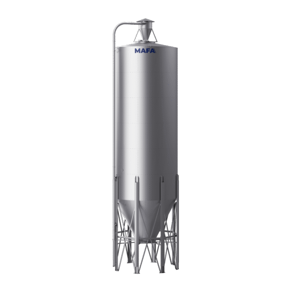 MAFA Industri Big är en svensktillverkad silo utvecklad för industriella bioanläggningar där driftsäkerhet och lång livslängd är avgörande. Konstruktionen bygger på slitstark stålplåt med aluminium- och zinkbeläggning, vilket ger ett starkt korrosionsskydd och betydligt längre livslängd än traditionell galvanisering – perfekt för lagring av pellets och träpulver.