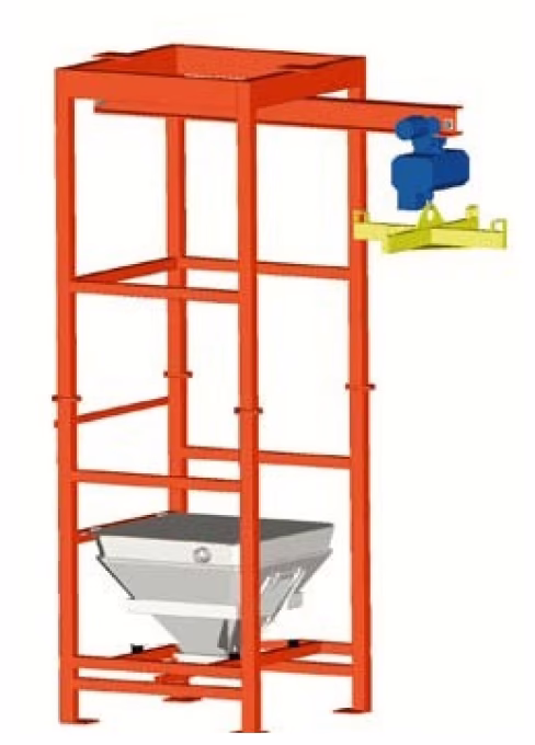 Storsäckstömmaren är anpassad för 4-öglesäck 600 – 1200 kg med utloppsstos.