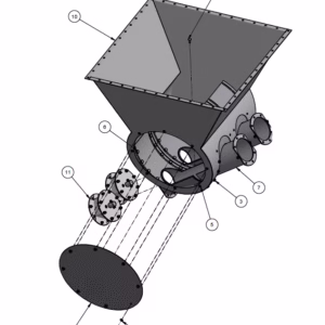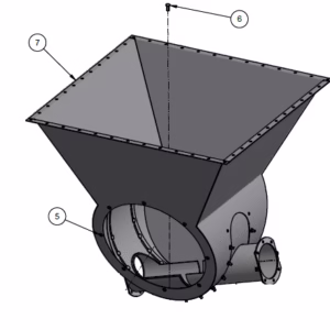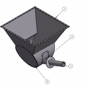 Skruvtransportör typ TU/273/0700/S43/12/7,5 kW tillverkad i st. 37 avsedd som utmatningsskruv. Skruven levereras med rektangulärt inlopp och cylindriskt utlopp. Skruven är försedd med inspektionslucka under inloppet och har stigning 2/3 vid inloppet och därefter stigning 1/1 på resterande skruvlängden. Den är försedd med direktmonterad kuggväxelmotor på utloppsidan. Skruven har mellanlager. Skruvtransportören levereras lackerad i någon Wam standard RAL färg.