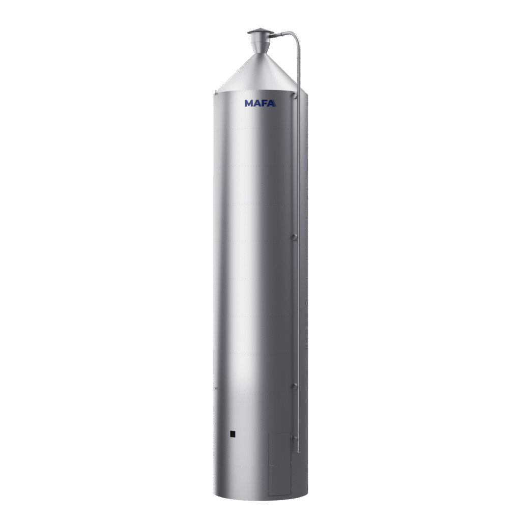 MAFA BIB är en robust och svensktillverkad silo, utvecklad för att möta höga krav inom industriell hantering av granulat, pulver, plast och pellets. Den är tillverkad i slitstark stålplåt med aluminium-zink-beläggning (Aluzink), vilket ger upp till tre gånger längre livslängd än traditionella galvaniserade silos. Silon levereras fabriksmonterad och omfattas av 10 års garanti mot genomrostning – ett tydligt bevis på kvalitet och långsiktig hållbarhet.