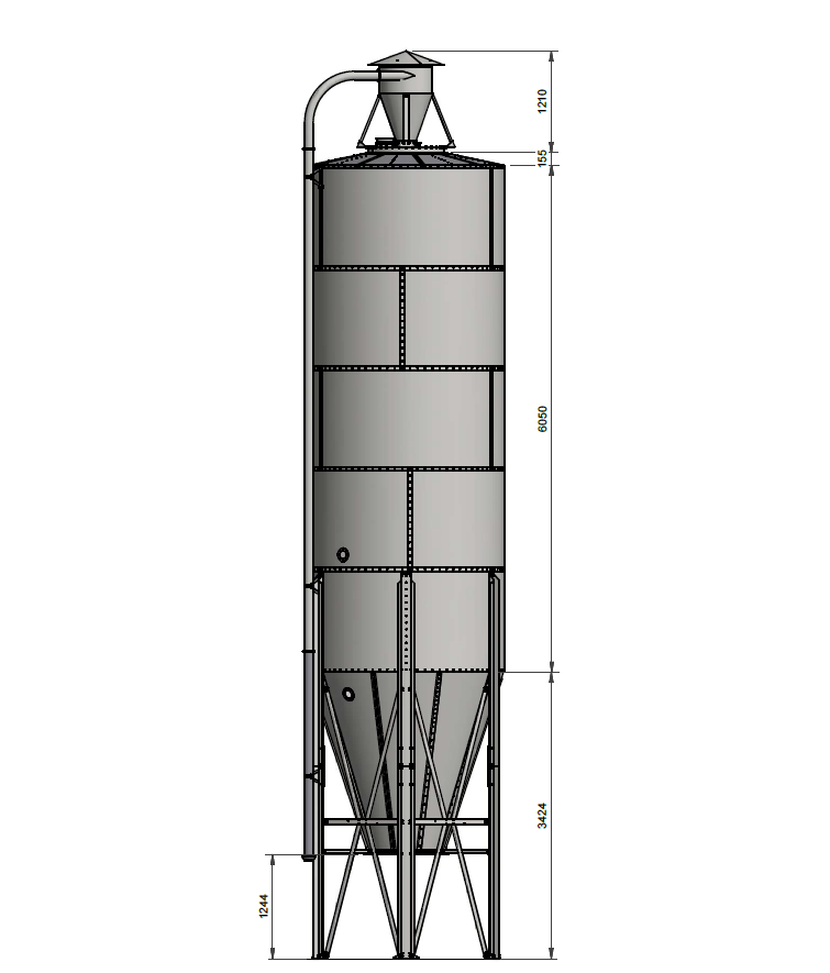 Om man köper till snabelcyklon ökar silohöjden med 363 mm.