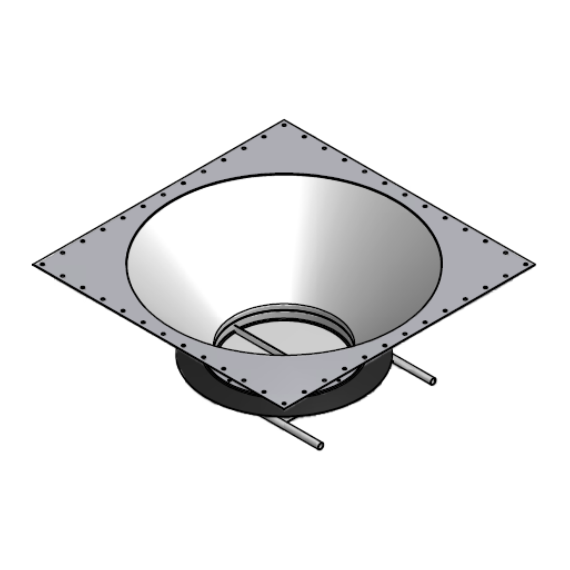Övergångskon med manuellt 400 mm knivspjäll för tömning av silo till tex. skottkärra.