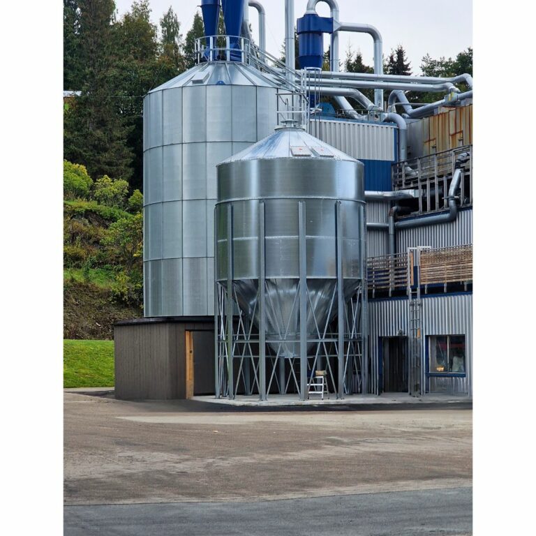 Den här gången har vi levererat en 86 kubikmeters silo till Norsk Limtre AS för lagerhållning av träpellets. Silon är anpassad enligt kundens önskemål och är utrustad med bl.a. stege, plattform/landgång och sprängbleck.