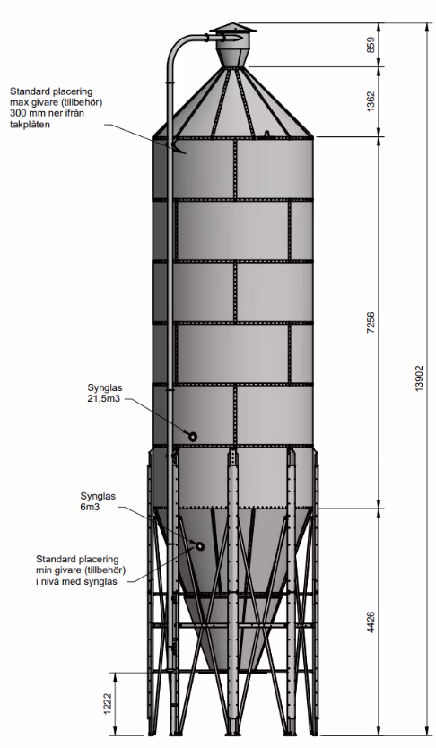 Om man köper till snabelcyklon ökar silohöjden med 363 mm.