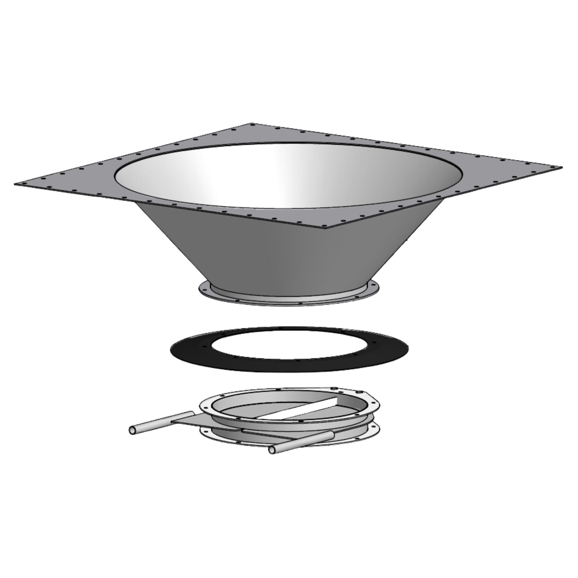 Övergångskon med manuellt 400 mm knivspjäll för tömning av silo till tex. skottkärra.