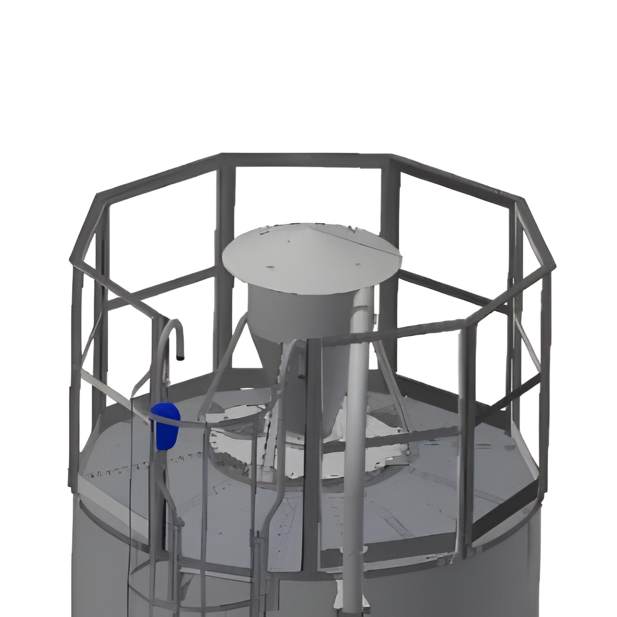 Takplattform med räcke för 12° taklutning. Täcker 360°. Vid behov kompletteras stege, vajersystem och andra tillbehör.